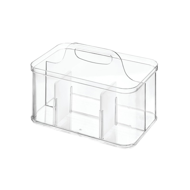 Органайзер Crisp выполнен из прочного прозрачного пластика. Модульная конструкция включает съемные разделители, разбивающих общую нишу на несколько более мелких, удобных для хранения разных предметов. Бокс можно использовать в ванной комнате – для хранения средств личной гигиены, в спальне – для хранения косметики и украшений, в кабинете – под канцелярские товары, а также в гостиной, коридоре и на кухне. Прочная прозрачная пластиковая конструкция легко моется смоченной в воде губкой и вытирается сухим полотенцем. Размер 25х16х18см.