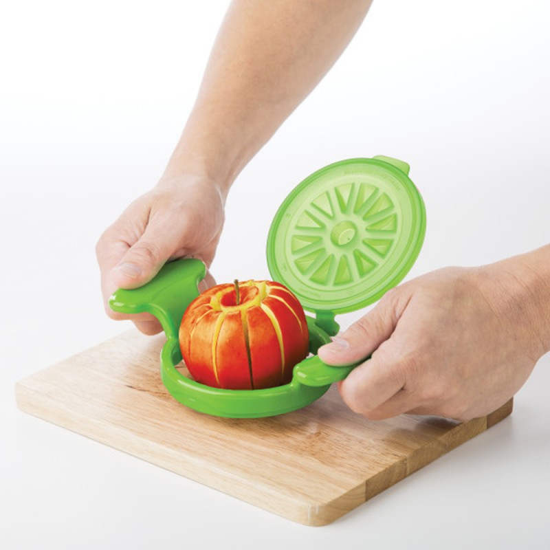 С легкостью нарежьте яблочные дольки идеального размера с помощью слайсера на 12 частей. Лезвия из нержавеющей стали позволяют легко нарезать кусочки, а широкие ручки защищают ваши пальцы. В конструкцию входит встроенная крышка, которая защищает лезвия, когда они не используются, и помогает выдвинуть яблоки после нарезки. Эта замечательная машина для нарезки яблок просто необходима на вашей кухне! Можно мыть в посудомоечной машине. Размер 13х6х23см