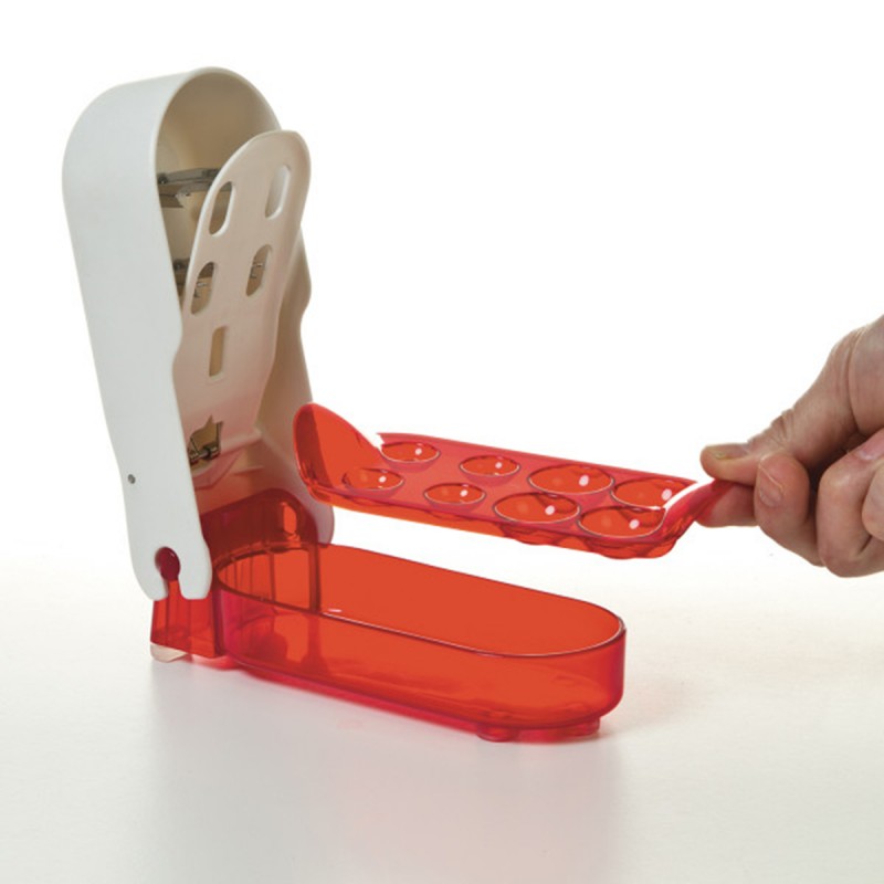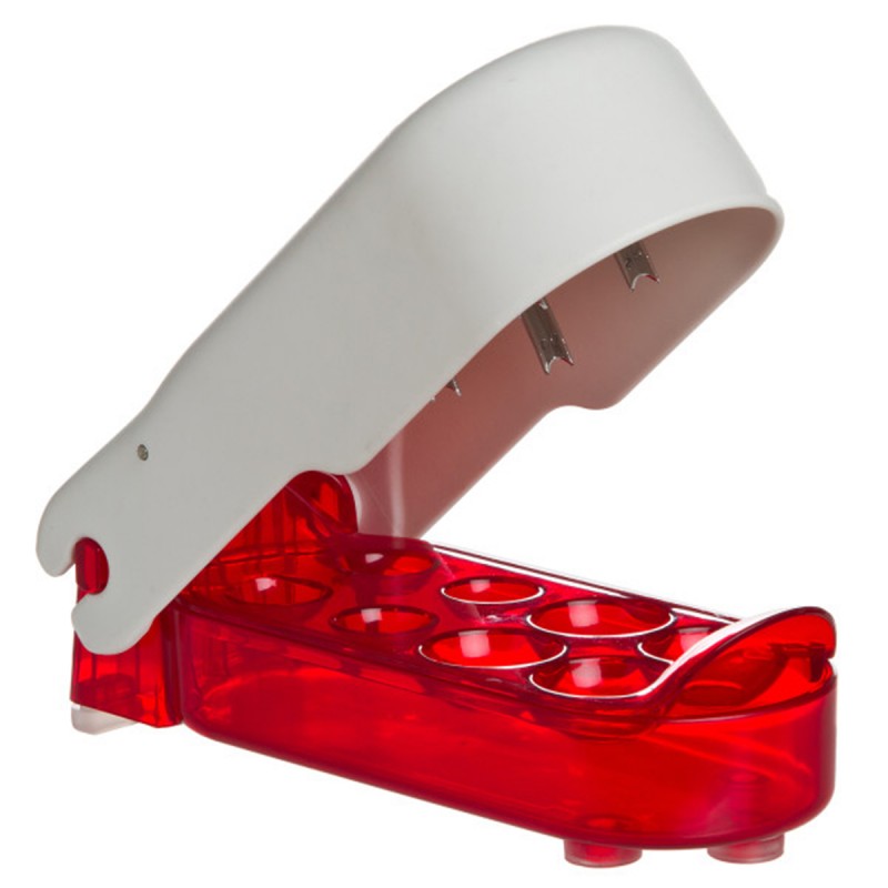 Прибор для удаления косточек из вишни или черешни защищает рабочий стол и одежду от пятен и беспорядка. Подпружиненный механизм для простоты использования, замки для безопасного и компактного хранения, нескользящая основа. Можно мыть в ПММ.