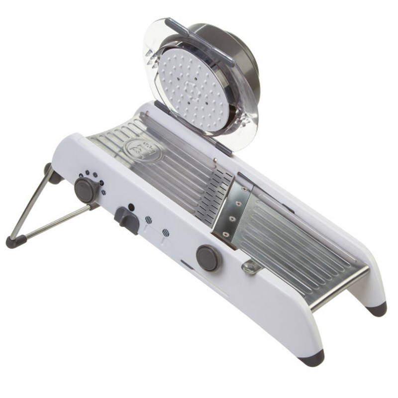 Наша профессиональная овощерезка поможет создать вкусный гратен, нежную морковную соломку и даже вафли. Она просто незаменима на кухне. Овощерезка оснащена ручкой регулировки лезвия для плавного переключения. Толщина нарезки ломтиков варьируется от 1 мм, 3,5 мм, 5,5 мм и 7,5 мм. Широкая дека из нержавеющей стали позволяет продуктам легко скользить, а защитный кожух для рук обеспечивает стабильную нарезку продуктов. Нескользящие ножки складываются для компактного хранения. Можно мыть в посудомоечной машине.