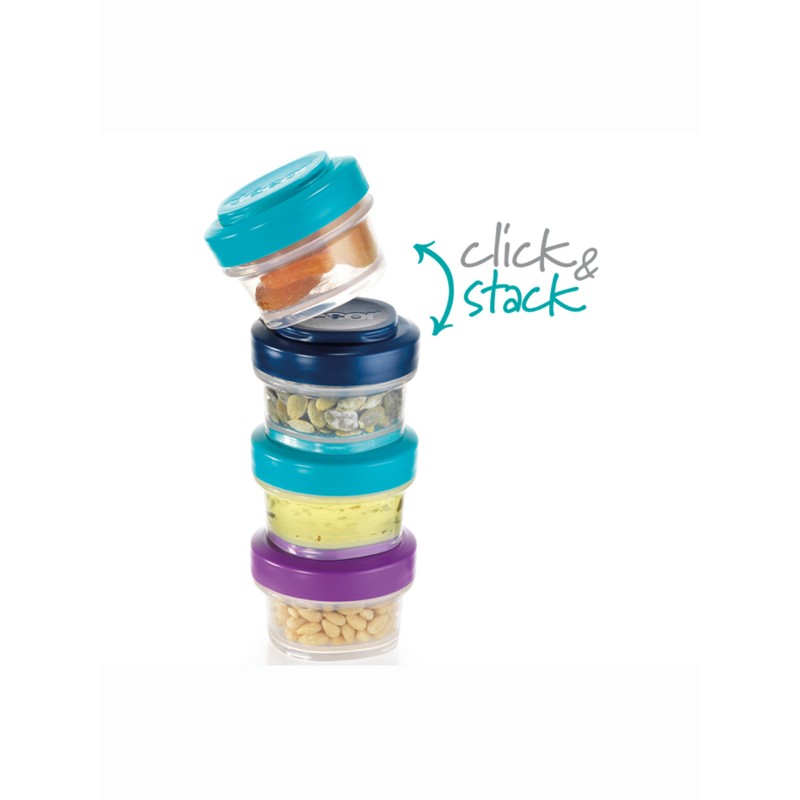 Click & Stack круглые контейнеры по 50 мл, 4 шт. Благодаря инновационному дизайну Click & Stack контейнеры могут скрепляться друг с другом для удобного перемещения и компактности! Идеальный размер для соусов, орехов, крекеров, фруктов, йогурта и многого другого. Характеристики: каждая упаковка состоит из четырех контейнеров по 50 мл, герметичные, сохраняют свежесть закусок, имеют надежное крепление крышки, можно хранить друг в друге для освобождения места. Можно мыть в посудомоечной машине, использовать в микроволновой печи и хранить в морозильной камере.
