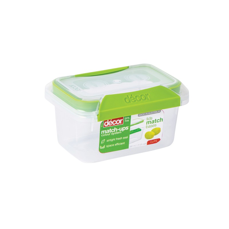 DECOR / Контейнер пищевой PREMIUM MATCH-UPS CLIPS прямоугольный зеленый 350мл (101040)