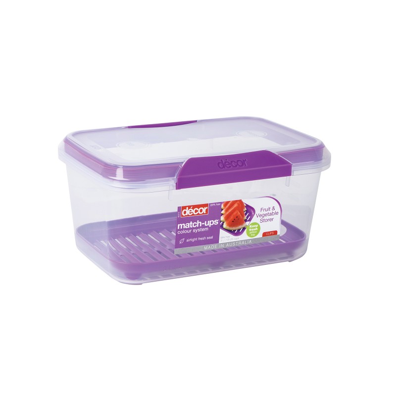 DECOR / Контейнер пищевой PREMIUM MATCH-UPS CLIPS со съемной решеткой прямоугольный фиолетовый 3л (101048)