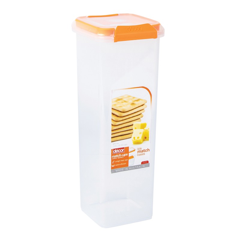 DECOR / Контейнер пищевой PREMIUM MATCH-UPS CLIPS высокий квадратный оранжевый 1.9л (101055)