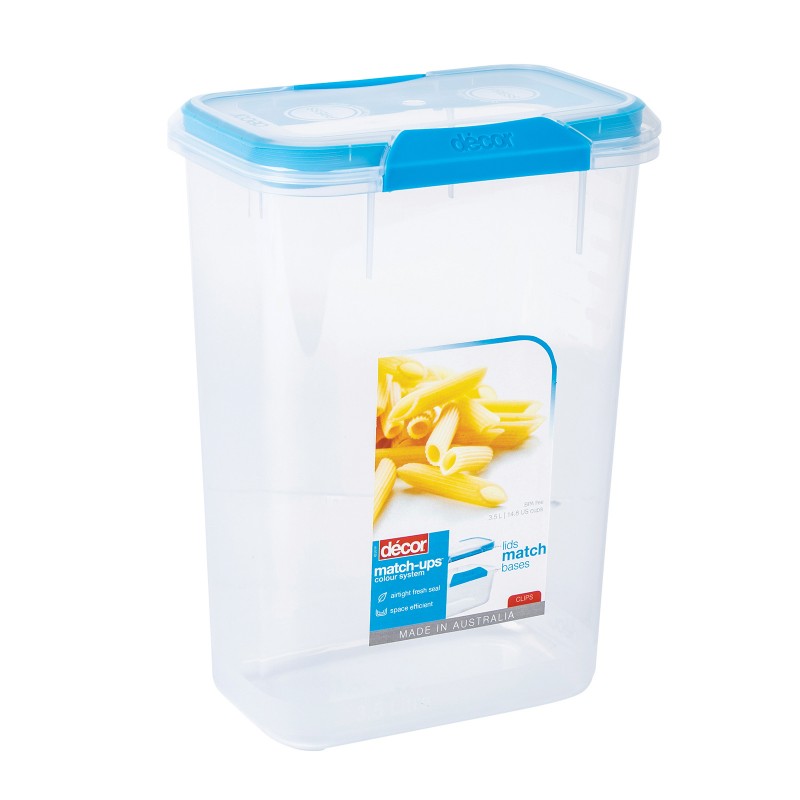 DECOR / Контейнер пищевой PREMIUM MATCH-UPS CLIPS высокий прямоугольный синий 3.5л (101044)