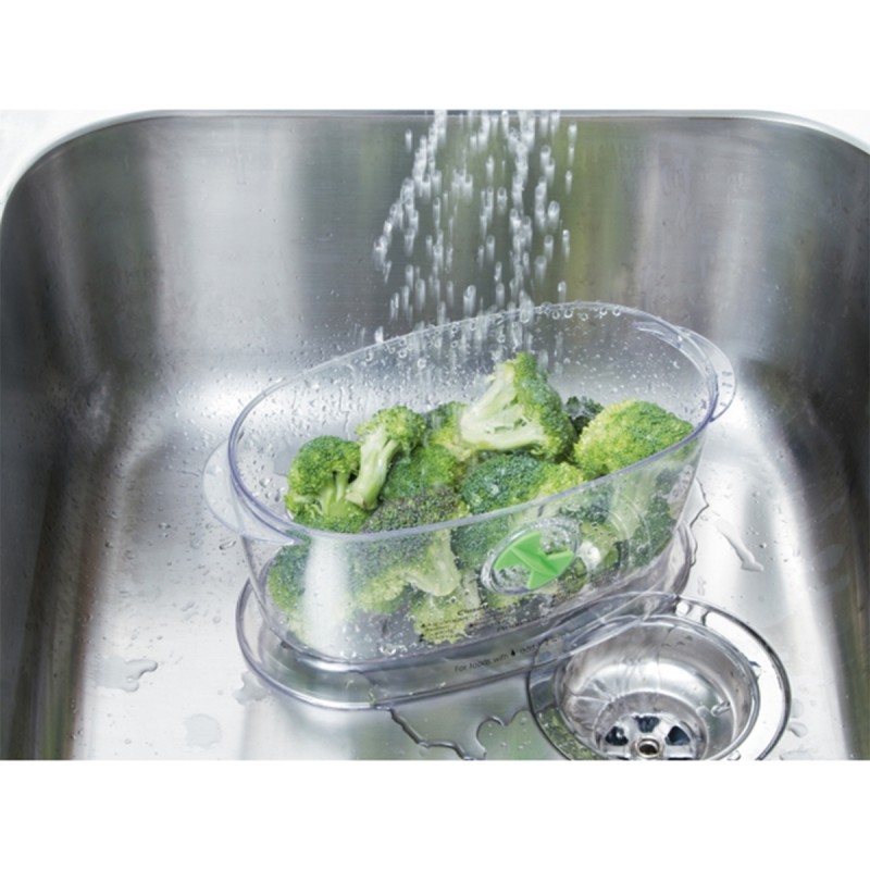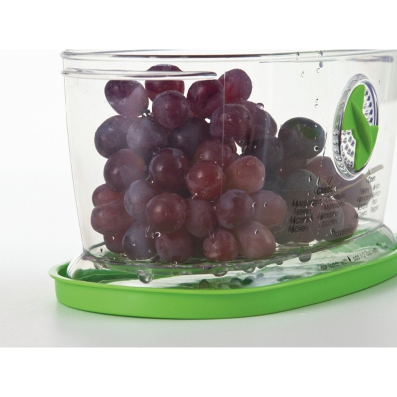 Храните свежие овощи, фрукты, зелень еще дольше! Это инновационное устройство для экономии продуктов оснащено регулируемым вентиляционным отверстием и резервуаром для воды, которые создают идеальные условия для свежих фруктов и овощей и дольше сохраняют их свежесть. Просто мойте и храните овощи в одном контейнере. Снимите нижнюю крышку, и контейнер станет дуршлагом. Установите прилагаемый разделитель на место, чтобы хранить в одном контейнере разные виды фруктов и овощей. Разделитель хранится внутри крышки, когда не используется. Можно мыть в посудомоечной машине. Объем 1.7 литра. Размер 25.4х12.7х11.43см.