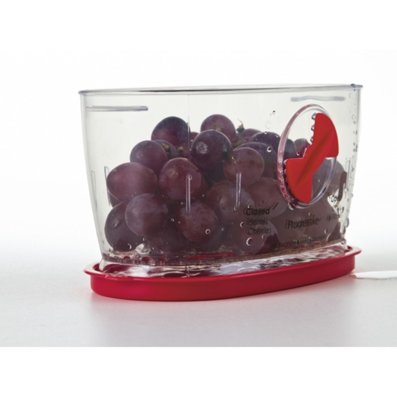 Свежие ягоды очень нежные, и их трудно хранить. С нашим контейнером вы можете хранить до 2 чашек свежей клубники, малины и других мелких фруктов. Специальный съемный разделитель, помогает еще дольше сохранить ягоды свежими. Вентиляционное отверстие регулирует циркуляцию воздуха, а резервуар для воды обеспечивает необходимую влажность. Снимите нижнюю крышку, и емкость станет дуршлагом. Объем 0,69литра. Размер 17.8х9.8х8.6см.