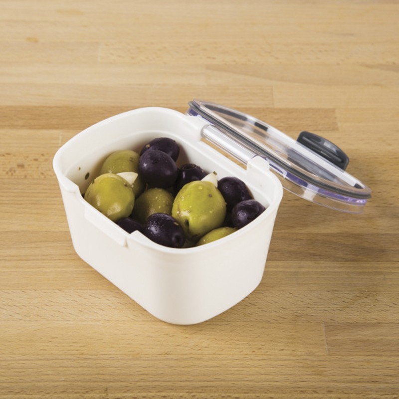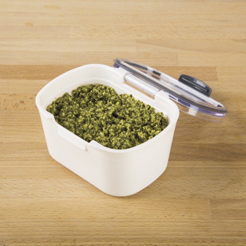 Небольшой размер контейнера 270 мл отлично подходит для оставшихся соусов и предварительно нарезанных начинок, оливок. Герметичный силиконовый уплотнитель продлевает свежесть. Не содержит бисфенол А. Можно мыть в посудомоечной машине.