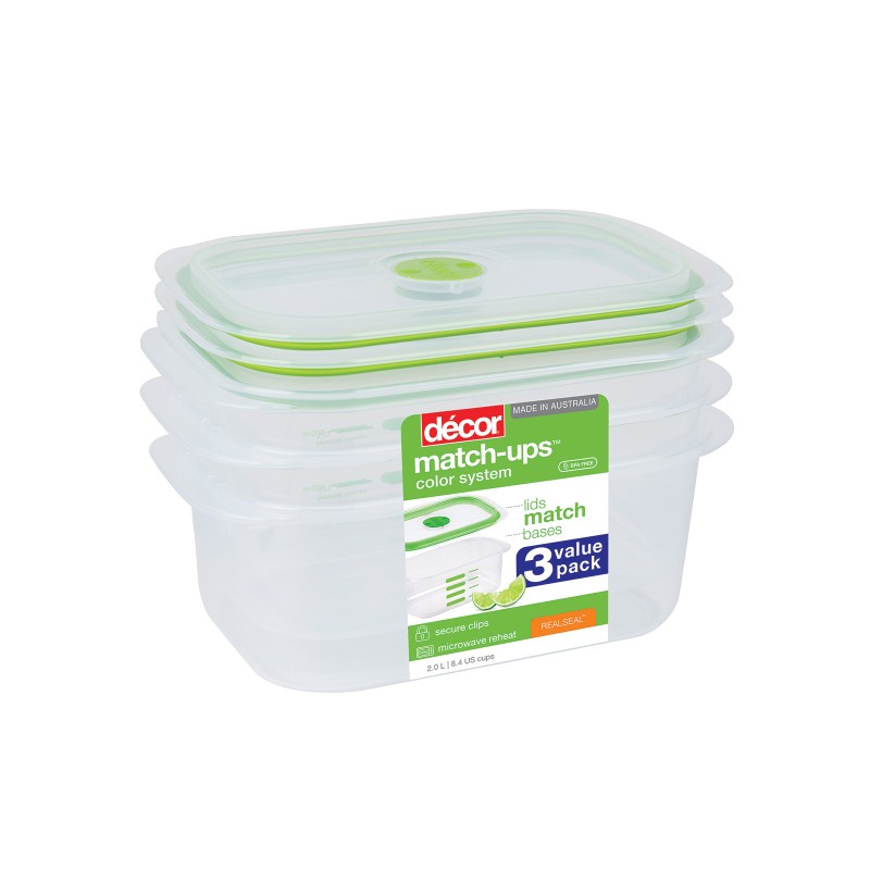 DECOR / Набор контейнеров пищевых PREMIUM MATCH UPS REALSEAL с клапаном 2л 3шт (101073)