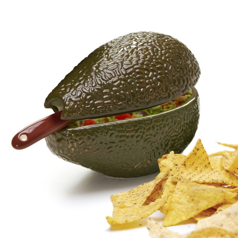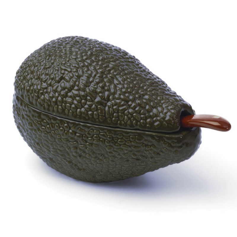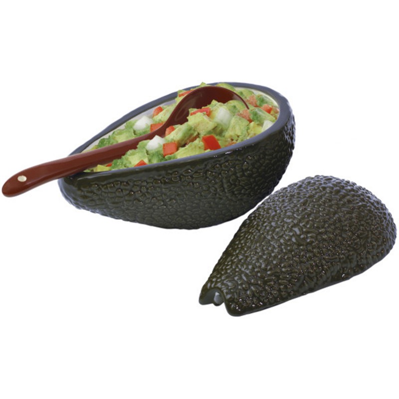 Керамическая форма в виде авокадо, расписанная вручную, идеально подходит для подачи гуакамоле или соусов. Чаша емкостью 355 мл с крышкой и ложкой. Можно мыть в посудомоечной машине.