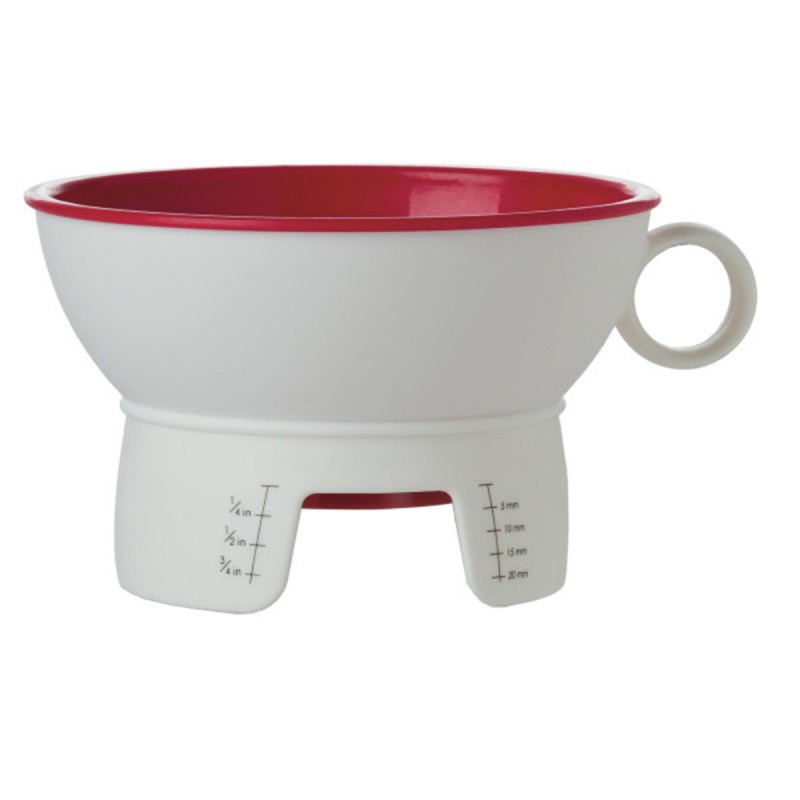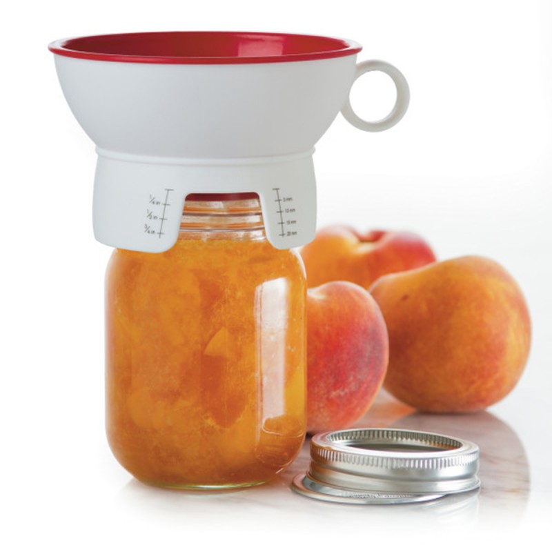 Внешняя воронка для консервирования надежно надевается поверх банок с широким и обычным горлышком и защищает ее поверхность от загрязнений. Она оснащена шкалой для измерения свободного пространства, напечатанной на обеих сторонах воронки, для быстрого и удобного использования. Можно мыть в ПММ.