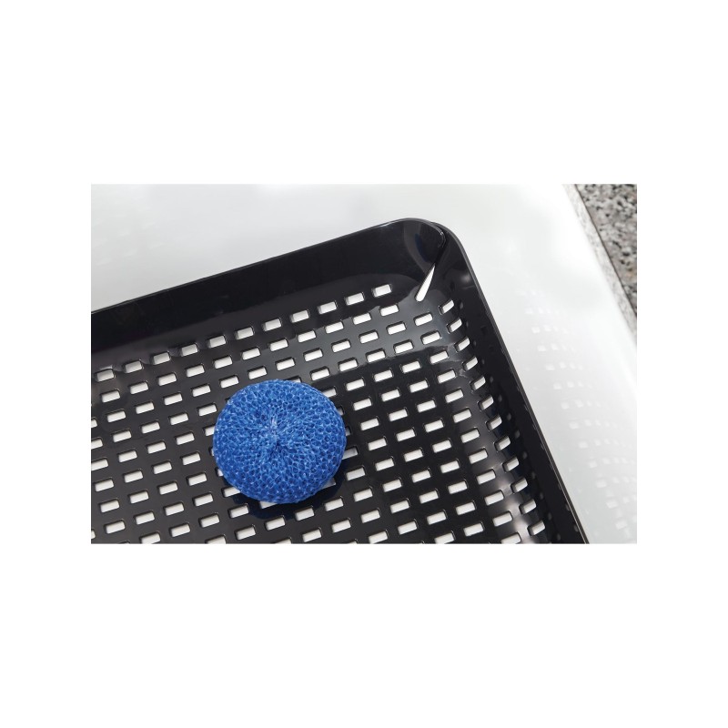 Коврик выполнен из высококачественного нескользящего пластика, прочного и долговечного. Посуда на таком коврике не будет скользить, даже если она намылена средством для мытья. Отверстия в коврике позволяют воде быстро стекать и не задерживаться в раковине. Коврик легко почистить и высушить при необходимости.