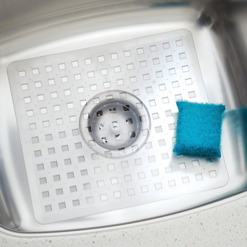 Коврик для сушки посуды в раковину серии Euro Sinkware от InterDesign стильная и функциональная. Коврик защищает дно раковины от царапин и сохранит хрупкую посуду от сколов и скольжения. Конструкция позволяет легко пропускать воду.Изготовлен из прочного пластика.