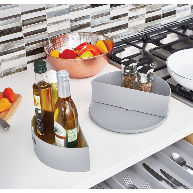 Этот экологически чистый органайзер из переработанного пластика iDesign Eco предназначен для хранения бутылок с растительным маслом, уксусом, специй и пряностей. Он также отлично подходит для использования в ванной, спальне, шкафу, офисе, мастерской, детской или в любом другом месте, где вам нужна дополнительная организация. Конструкция с открытым верхом гарантирует, что предметы всегда видны и доступны. Прочная конструкция из переработанного полипропилена (RPP), не содержащая бисфенола А, подходит для повседневного использования, а современная светло-серая отделка универсальна. Органайзер состоит из трех предметов, круглого основания и двух съемных лотков.