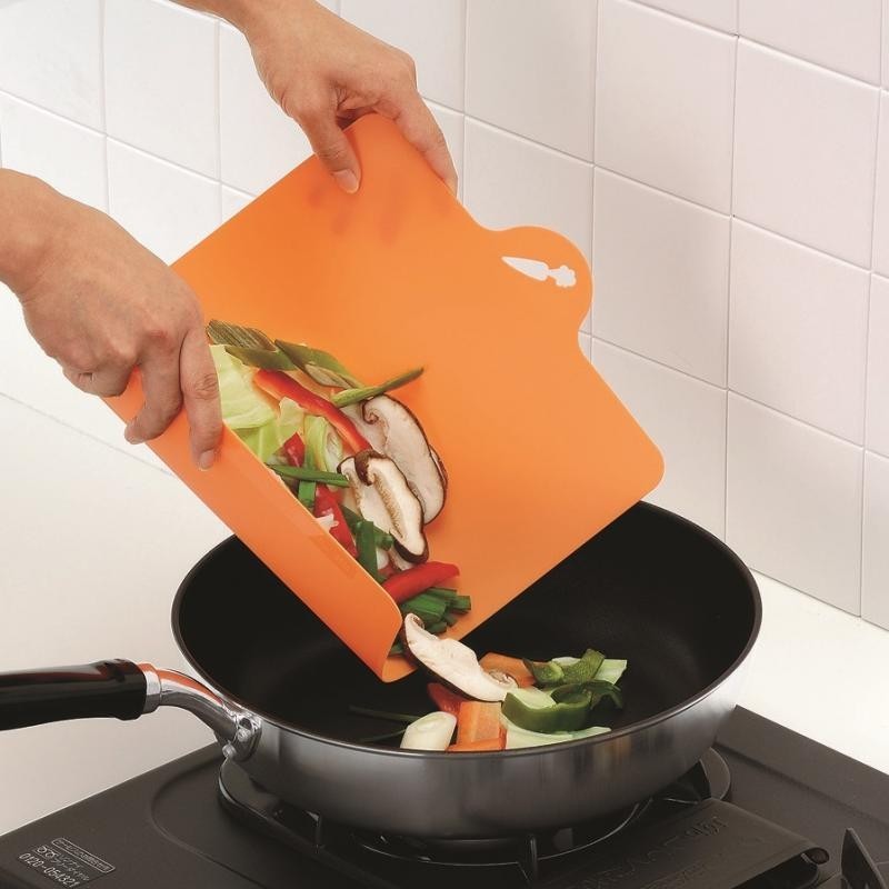 Доска разделочная из гибкого прочного пластика. Послужит прекрасным помощником на кухне. Благодаря своей форме он позволяет высыпать нарезанные продукты легко и удобно ничего не просыпая. Сделана из качественного пластика,не впитывает запахов, полностью безопасна.