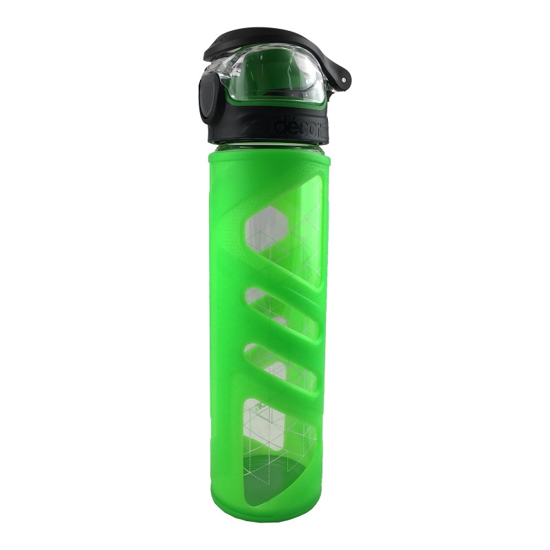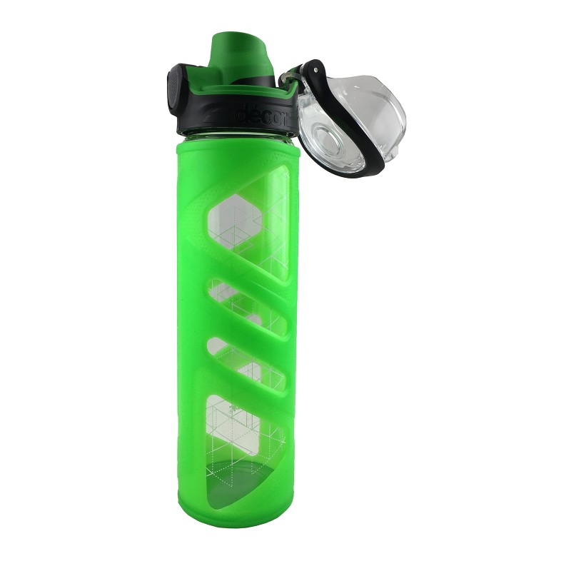 DECOR / Бутылка герметичная STRENGTH GLASS боросиликатное стекло в силиконовом рукаве 590мл, салатовый (101139)