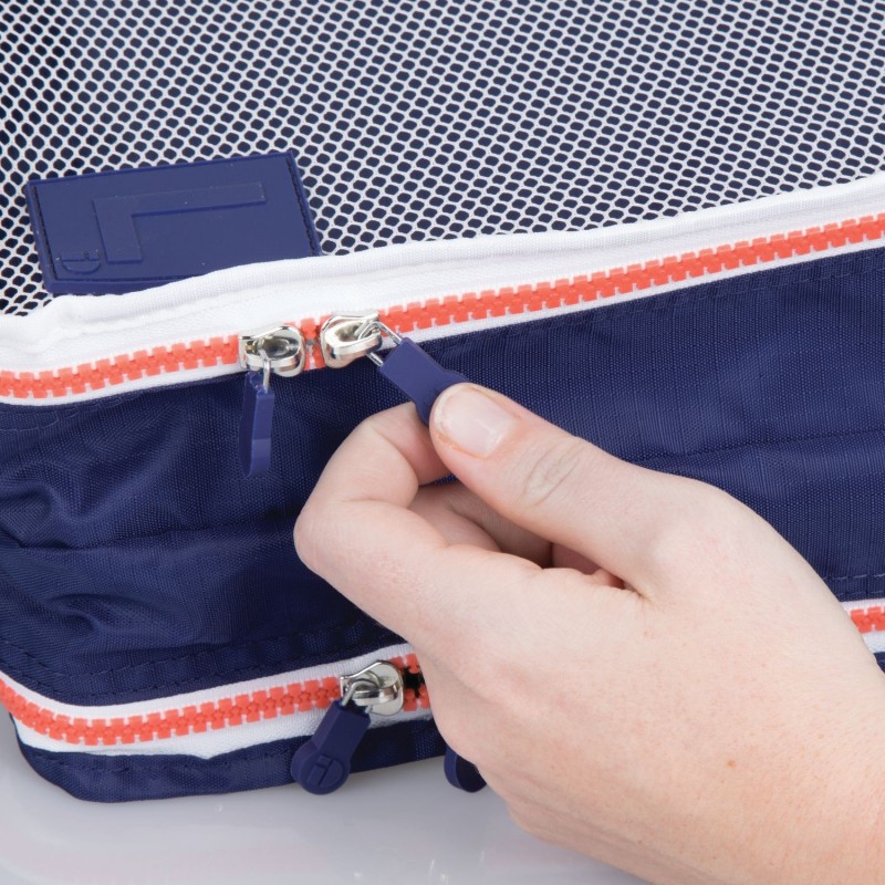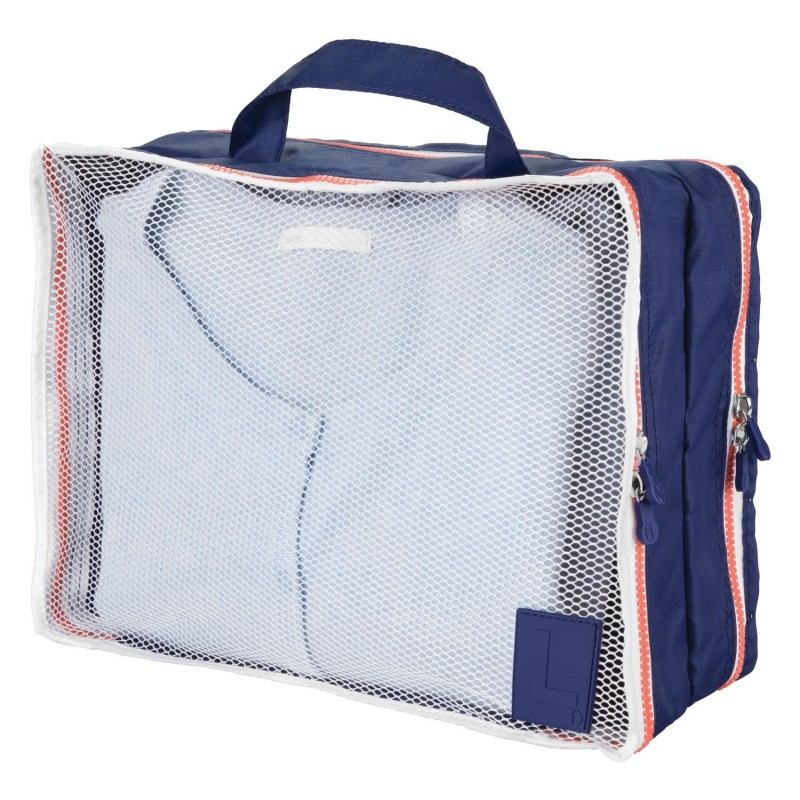 Компактный органайзер для багажа стильного цвета нэви.Сделайте каждый сантиметр внутри вашего чемодана работающим на оптимизацию пространства и большую вместительность. Легкая ткань из которой выполнен набор помогает защитить ваши вещи, не добавляя лишний объем в чемодан. Водонепроницаемые, складываются для компактного хранения, когда они не используются, и имеют открытую сетчатую стенку для вентиляции воздуха и вы сможете быстро найти то, что нужно. Неважно, что вы совершаете однодневную поездку или длительный отпуск, каждый из органайзеров поможет аккуратно разделить и аккуратно сложить предметы одежды и аксессуары, когда вы в дороге.