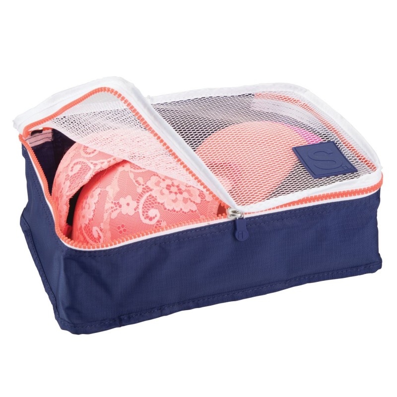 Набор из 3 компактных органайзеров для багажа стильного цвета нэви.Сделайте каждый сантиметр внутри вашего чемодана работающим на оптимизацию пространства и большую вместительность. Легкая ткань из которой выполнен набор помогает защитить ваши вещи, не добавляя лишний объем в чемодан. Водонепроницаемые, складываются для компактного хранения, когда они не используются, и имеют открытую сетчатую стенку для вентиляции воздуха и вы сможете быстро найти то, что нужно. Неважно, что вы совершаете однодневную поездку или длительный отпуск, каждый из органайзеров поможет аккуратно разделить и аккуратно сложить предметы одежды и аксессуары, когда вы в дороге.