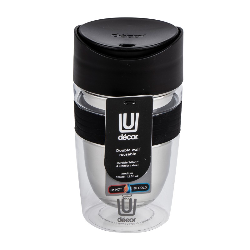 DECOR / Термокружка TRAVEL CUP с двойными стенками тритан, нержавеющая сталь 370мл, черный (101176)