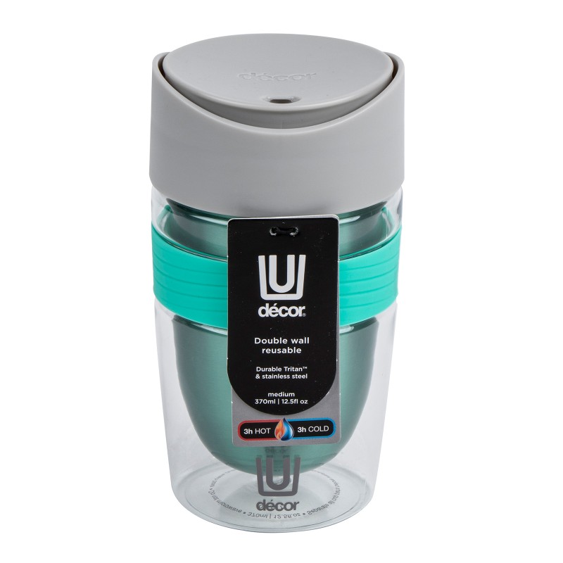 DECOR / Термокружка TRAVEL CUP с двойными стенками тритан, нержавеющая сталь 370мл, мятный (101175)
