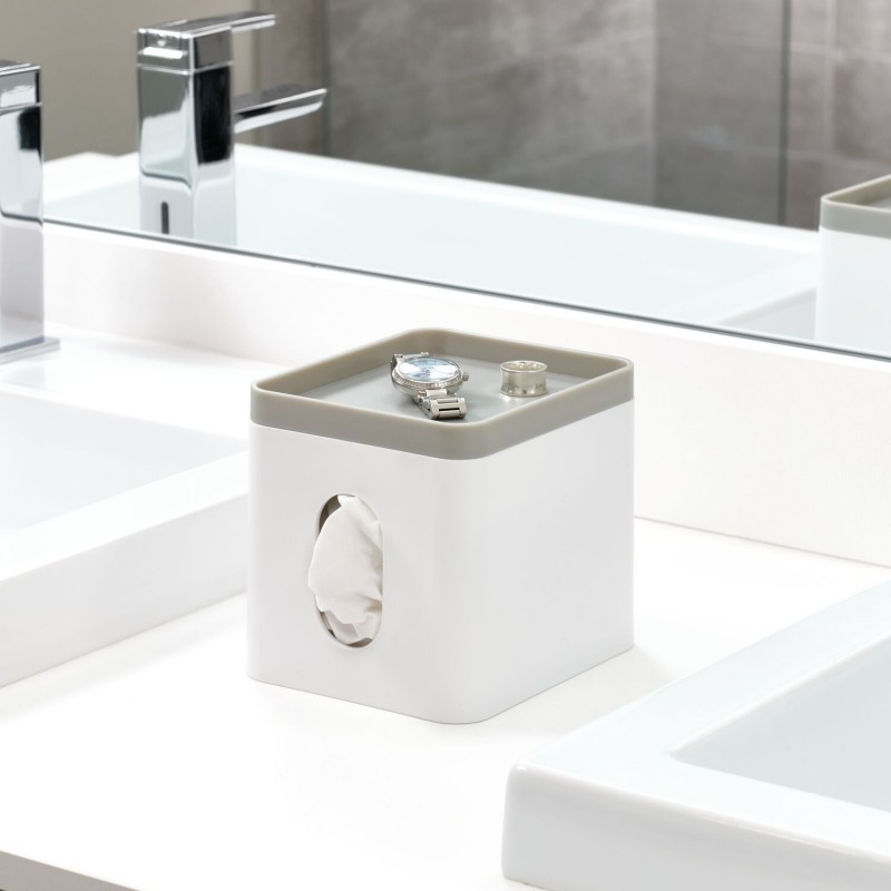 С этой емкостью для бумажных полотенец и сухих салфеток вы с легкостью наведете порядок в ванной или на туалетном столике. Она выполнена в нежном цвете и будет отлично сочетаться с другими аксессуарами из этой же серии. Емкость позволяет хранить бумажные полотенца и сухие салфетки. не извлекая их из коробки. Заводскую упаковку достаточно поместить внутрь пластиковой емкости. чтобы совпали отверстия в передней части. При этом разномастные упаковки будут скрыты лаконичным дизайном емкости. это сделает интерьер вашей ванной комнаты гармоничным. Сверху емкость закрывается крышкой. которая имеет углубление для самых разных мелочей. часов. украшений. косметики. аксессуаров для волос. Компактные размеры позволяют разместить емкость на раковине или столешнице. не занимая много места. Прочный матовый пластик обеспечит долговечность и легкость в уходе.