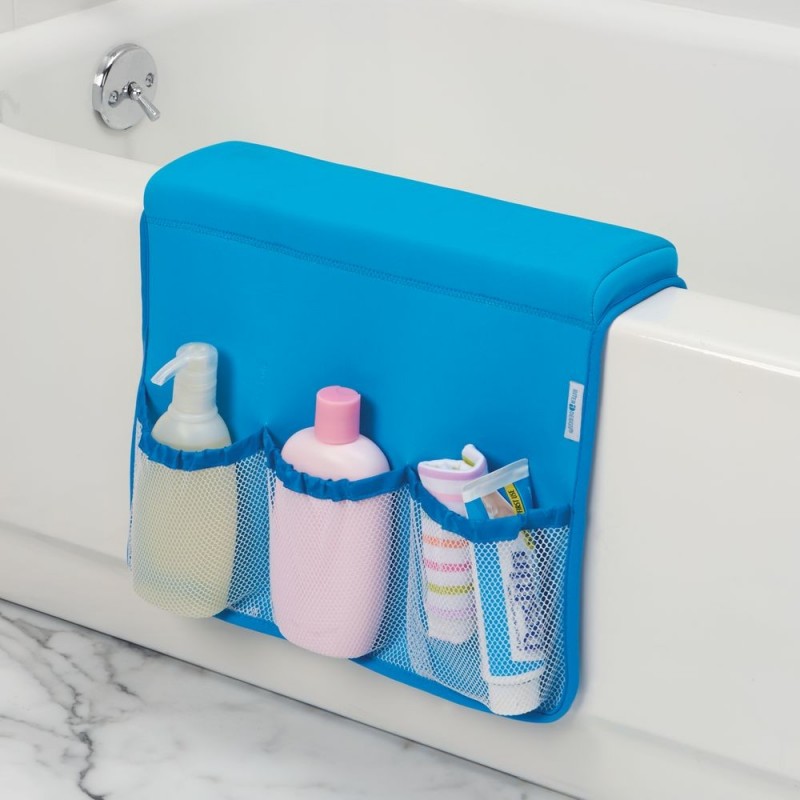 Наш органайзер незаменим для любителей принимать ванну. Благодаря оригинальному дизайну он очень удобен в применении. Органайзер прикрепляется на присоски, что позволяет его свободно перемещать в любое удобное для вас место. Также он очень вместителен, имеет 3 наружных кармана, где вы можете хранить необходимые вам косметические средства, гели, шампуни и другие ванные принадлежности.