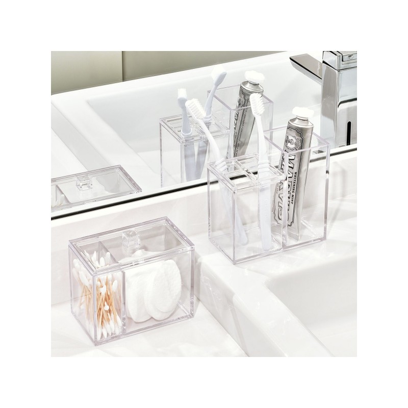 InterDesign / Органайзер с крышкой для ванных принадлежностей прямоугольный двойной Clarity прозрачный пластик (100827)