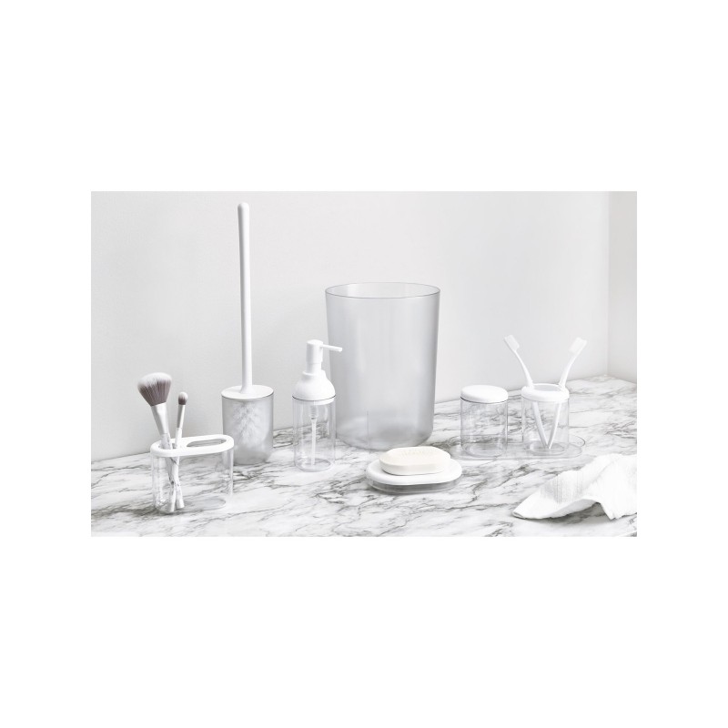 Дизайнерский пластиковый овальный стакан с отделениями для зубных щеток Finn, вмещает стандартные зубные щетки, зубную пасту, кисти для макияжа, карандаши, ручки и маркеры. Добавьте современный облик вашему интерьеру, стильный прозрачно белый цвет станет прекрасным дополнением к нему. Изготовленный из прочного пластика, легко чистится и прослужит долгие годы. Просто протрите мягким мылом и водой для быстрой очистки. Размер 11х5,4х8,9см.
