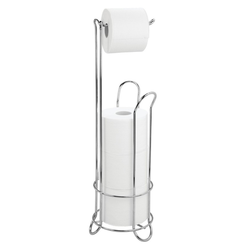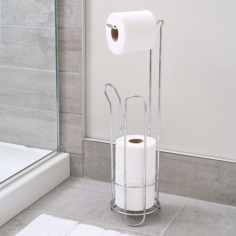 Держатель для туалетной бумаги изготовлен из высококачественной стали. Удобен в использовании, его не нужно крепить к стене, а можно просто поставить на пол. Оптимальный размер и стильный дизайн превращают обычное хранение в отличный предмет интерьера, который способен стать изюминкой в вашей ванной комнате. Имеет отсек для хранения дополнительных рулонов, поэтому ваша бумага не закончится внезапно.
