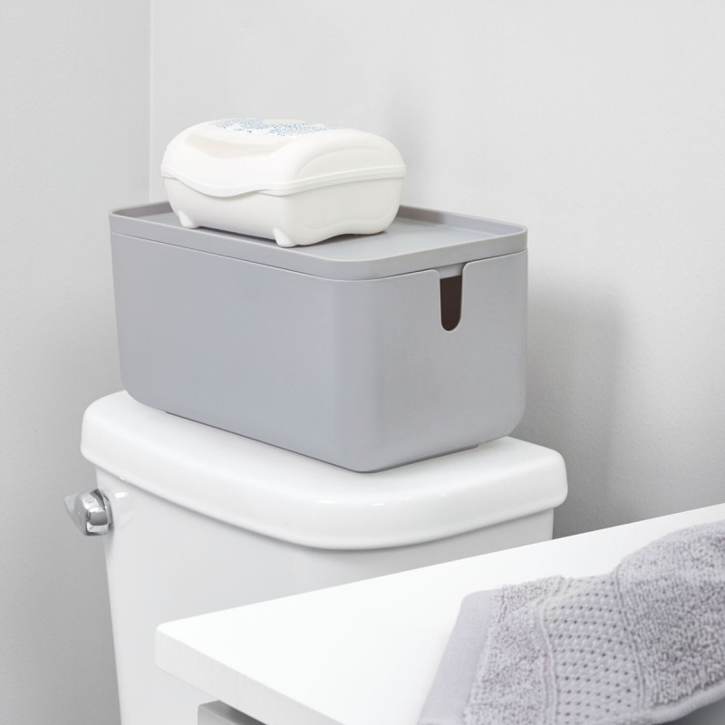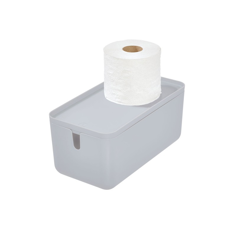 Контейнер с крышкой Cade идеально подходит для добавления дополнительного места при хранении в компактных помещениях. Его можно использовать как резервуар для хранения 2 рулонов туалетной бумаги. Контейнер можно использовать рядом с унитазом, на верхней части бака или в шкафах, а нескользящие ножки помогают удерживать его на месте. Съемная крышка сохраняет туалетную бумагу чистой и сухой до тех пор, пока она не будет готова к использованию, крышка обеспечивает место для хранения чистящих салфеток, спреев или телефонов. Современный дизайн прекрасно вписывается в любой интерьер ванных комнат. Прочная, устойчивая к ржавчине пластиковая конструкция, не содержащая бисфенола А, подходит для повседневного использования и легко очищается с помощью мягкого мыла и воды. Размер 30,1х16,2х14,6см.