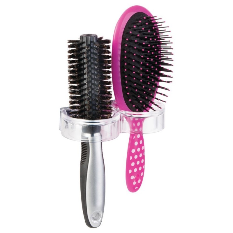 Очень простое и удобное решение для хранения расчесок. Самоклеющийся держатель легко и прочно крепится без дополнительных приспособлений. Непременно подойдет к любому интерьеру, благодаря тому что изготовлен из прозрачного пластика.