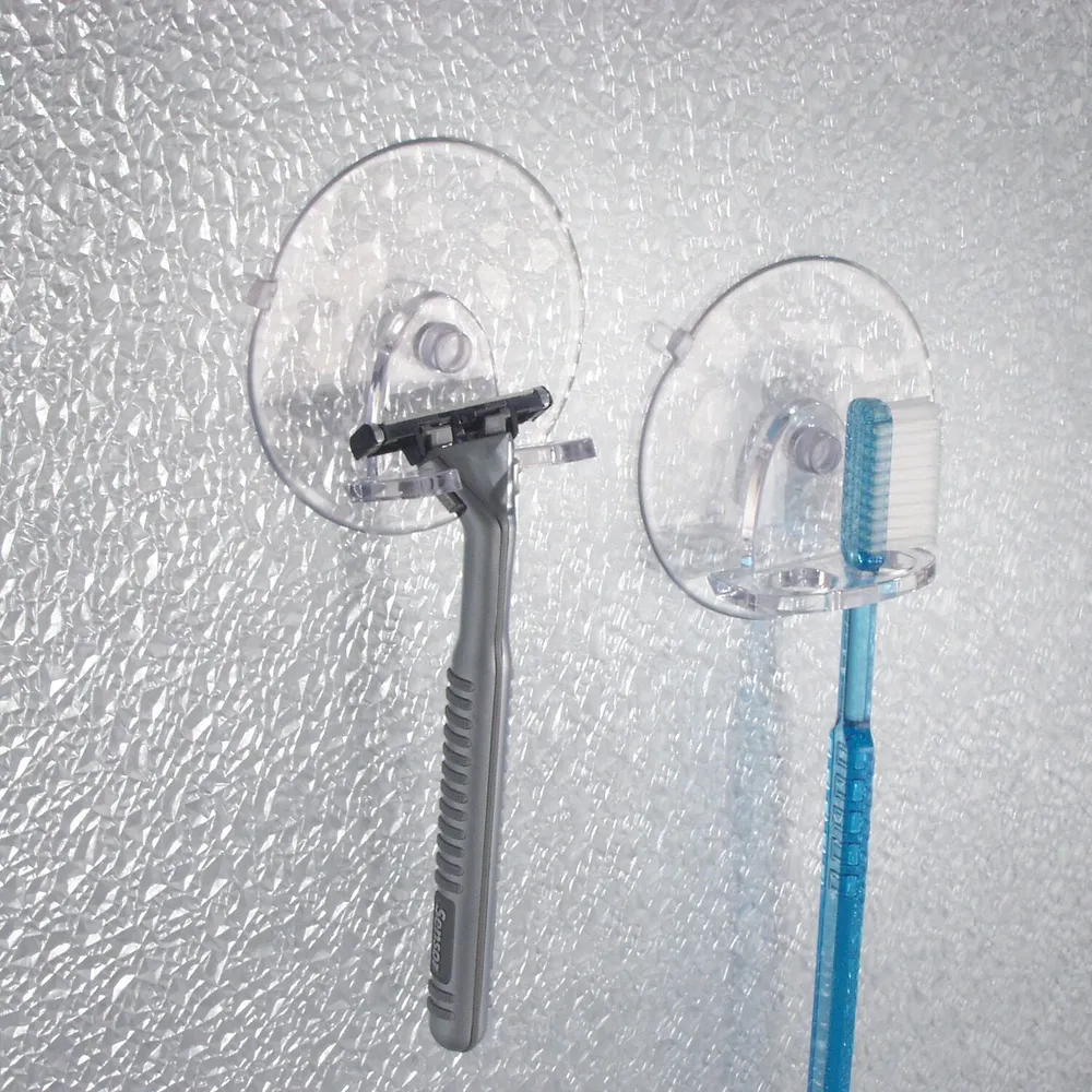 Держатель зубной щетки на присоске отличается простой и лаконичной конструкцией. Его легко прикрепить к стенке ванны или душа. Вмещает 2 зубных щетки, изготовлен из прочного прозрачного пластика, крепится к любой гладкой непористой поверхности, такой как плитка, стекло, стекловолокно и металл.
