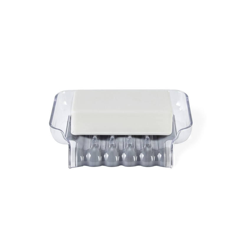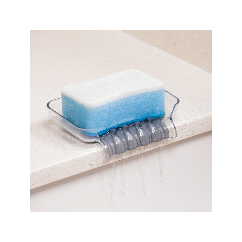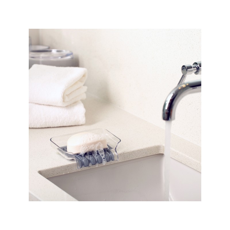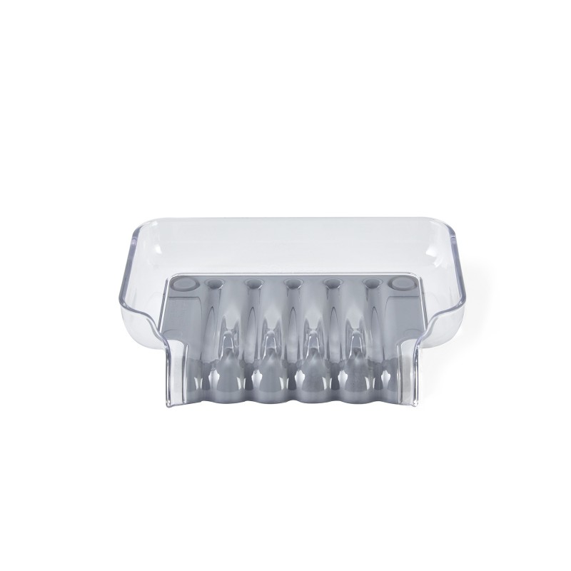 Мыльница на присосках TRICKLE TRAY - это уникальное, современное решение. С помощью системы каналов направляет излишнюю воду в раковину или ванну, предотвращает ее скоплению и способствует быстрому высыханию губок или мыла. Цвет прозрачный/серый.