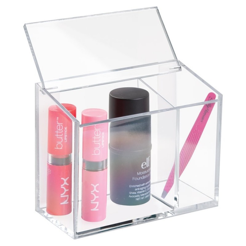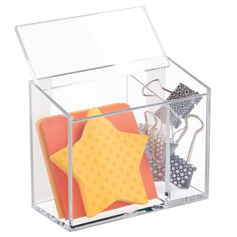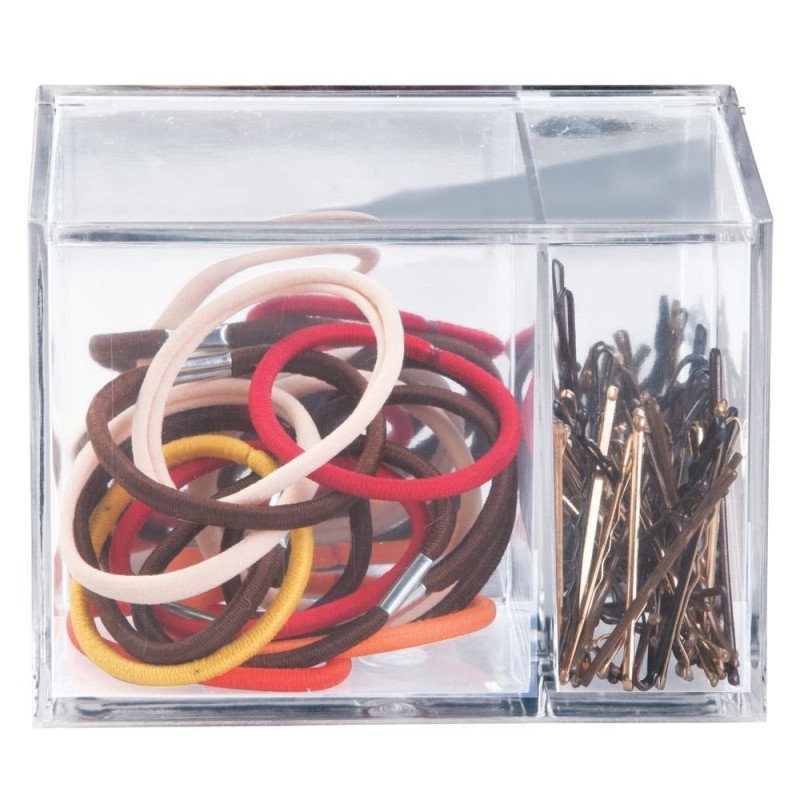 Органайзер для хранения с двумя отсеками и крышкой. Храните мелкие предметы в одном месте. Благодаря прозрачному пластику легко увидеть содержимое органайзера, а крышечка надежно защитит предметы от пыли. Хранение станет легким и удобным.