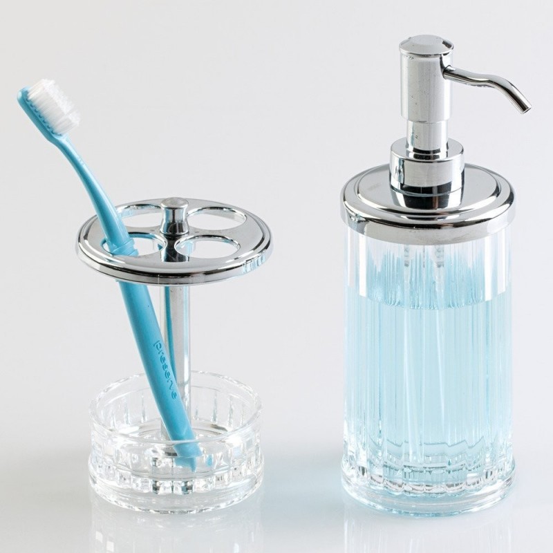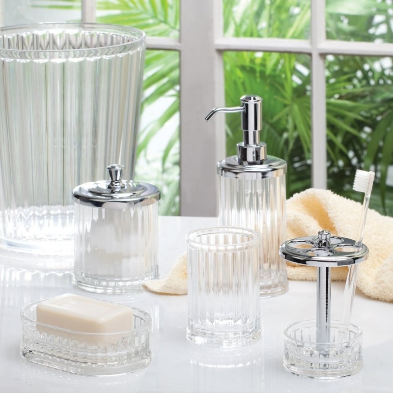 Диспенсер для мыла от InterDesign отличается прочностью, а так же оригинальным узнаваемым дизайном серии Alston с ребристой фактурой внешне имитирующая стекло и защитит вашу раковину от грязной мыльного налета.