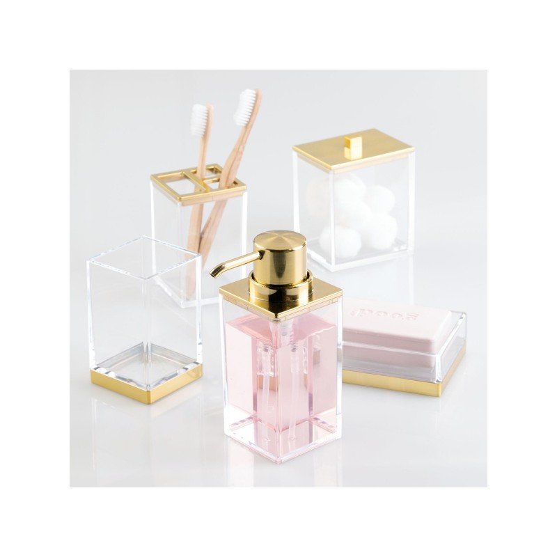 Основная емкость диспенсера для жидкого мыла изготовлена из прозрачного пластика, выглядящего также как стекло. А дозатор выполнен в золотом цвете, что сделает диспенсер настоящим украшением помещения и добавит королевского шика.