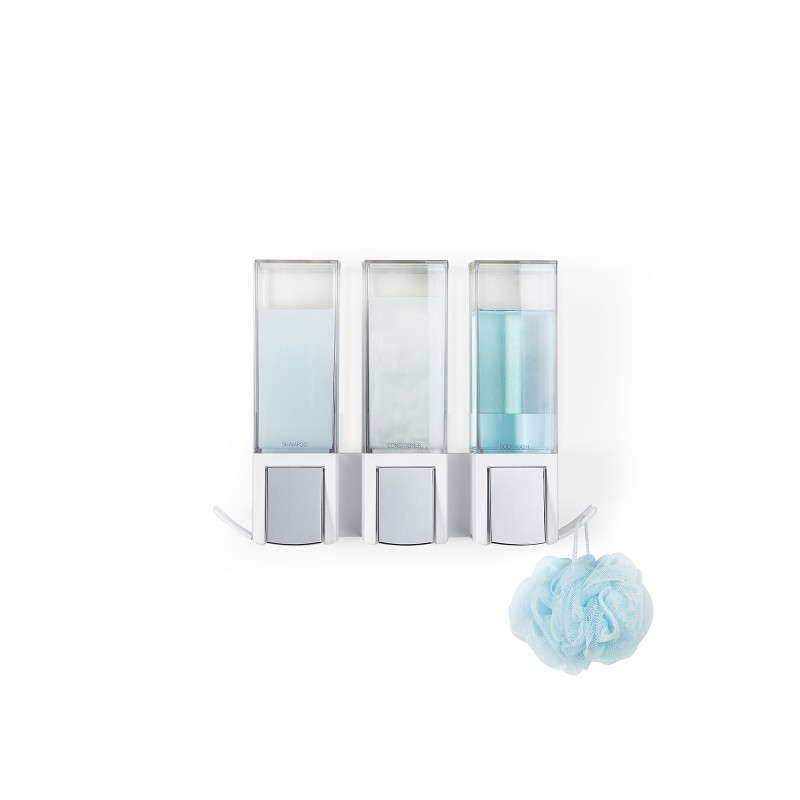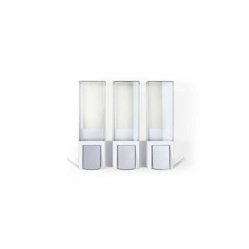Диспенсер имеет индивидуальные камеры для легкой заправки, объемом 500мл. Все диспенсеры включают в себя 2 удобных крючка для хранения аксессуаров в ванной.