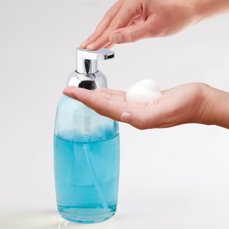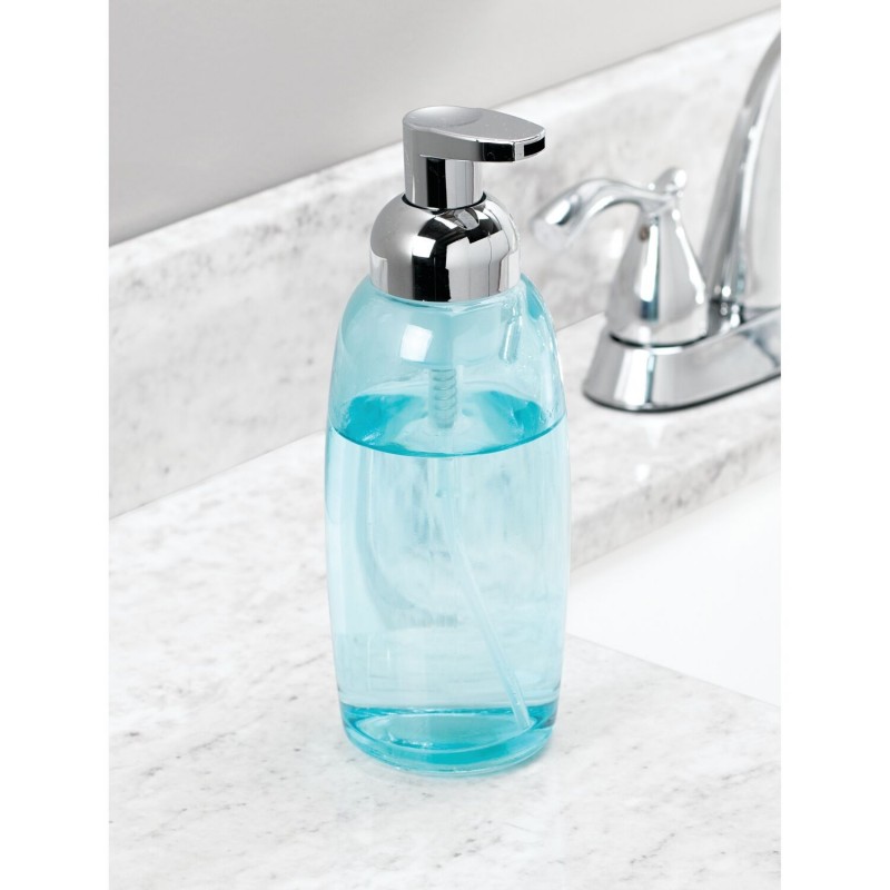 Стильный дозатор из голубого стекла для жидкого мыла Ariana от InterDesign. Благодаря объему в 350 мл, вы избавите себя от регулярных забот о том, что пора приобрести новое мыло.