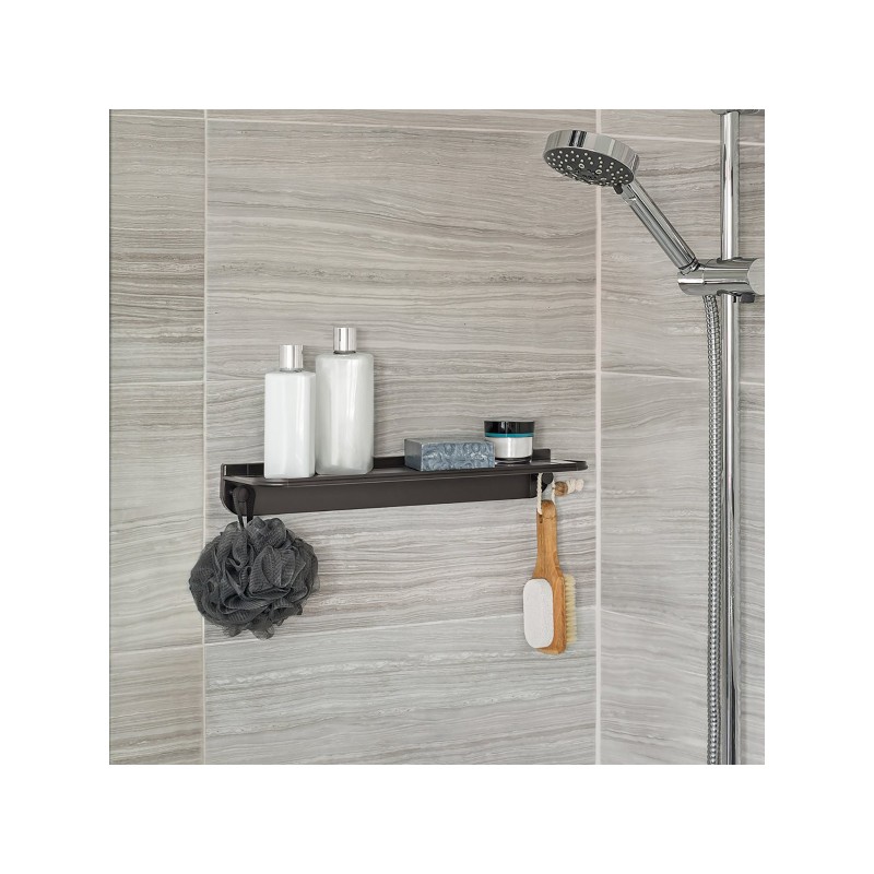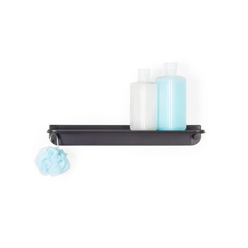 Полка для ванной комнаты GLIDE сочетает в себе дизайн с прочностью устойчивого к ржавчине алюминия, надежно устанавливается с помощью силиконового клея и скотча. Идеально подходит для хранения различных средств для душа и аксессуаров. Встроенные крючки обеспечивают места для подвешивания мочалок. Быстро устанавливается без инструментов. Нагрузка 9кг. Размер 45.7х11.1х6см, вес 0.4кг.