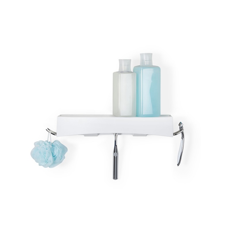 Полка для душа CLEVER Flip Shover Shelf - это чистые линии и красивый дизайн. Полка оснащена двумя съемными крючками, где удобно разместить бритву и другие аксессуары для ванной комнаты. Просто разместите полку рядом с диспенсером CLEVER и Вы победите беспорядок навсегда. Установка полки проста и безопасна при использовании водонепроницаемого силиконового клея и двухсторонней ленты в комплекте. Изготовлена из прочного ABS пластика. Цвет белый/хром.