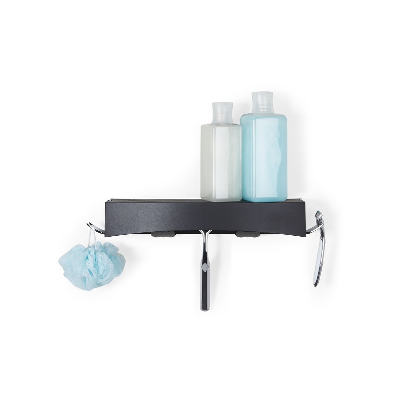 Полка для душа CLEVER Flip Shover Shelf - это чистые линии и красивый дизайн. Полка оснащена двумя съемными крючками, где удобно разместить бритву и другие аксессуары для ванной комнаты. Просто разместите полку рядом с диспенсером CLEVER и Вы победите беспорядок навсегда. Установка полки проста и безопасна при использовании водонепроницаемого силиконового клея и двухсторонней ленты в комплекте. Изготовлена из прочного ABS пластика. Цвет черный/хром.