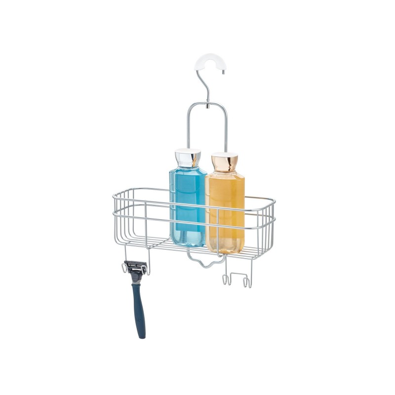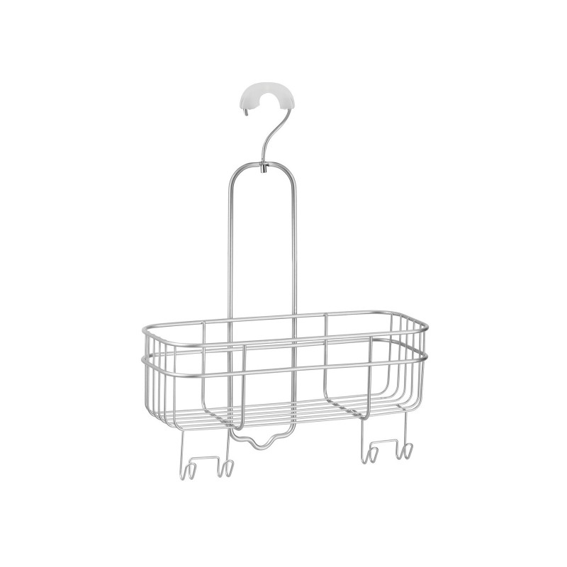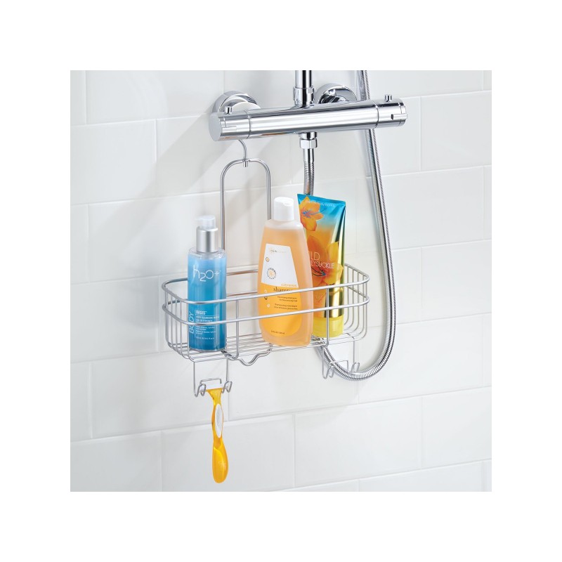 - Органайзер представляет собой крючок с держателем и корзину-подставку для гелей для душа, шампуней и прочих банных принадлежностей.