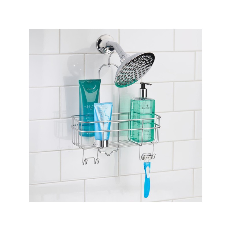 - Крючок поворачивается в разные стороны, поэтому его с легкостью можно повесить на душевую головку или крепление для душевой стойки, и вам не придется сверлить стены, чтобы установить эту удобную полочку.