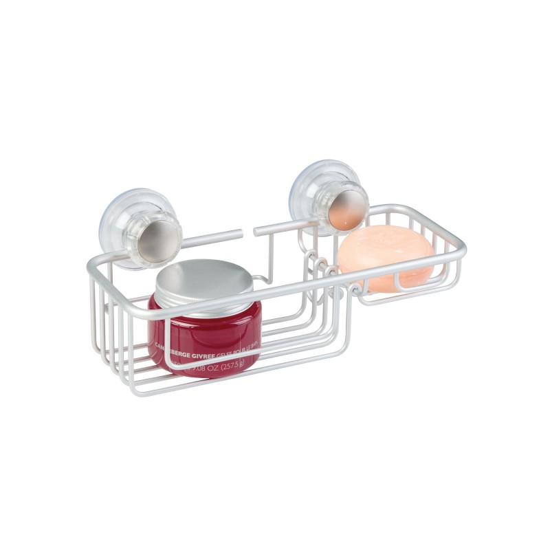 InterDesign / Полка для ванной комнаты с мыльницей Metro на присосках стальная (100835)