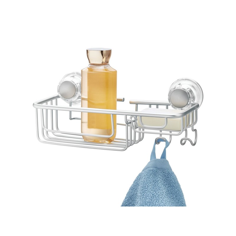 Для того чтобы установить полку внутри душевой, совсем не обязательно сверлить стены, ведь она крепится с помощью всасывающей технологии Turn-N-Lock. Просто приложите присоски к поверхности и поверните их внешнюю часть, чтобы изнутри вышел воздух.