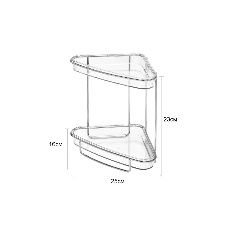 Двухуровневая полка треугольной формы с легкостью организует пространство в вашей ванной комнате, на кухне или на туалетном столике. В ней можно держать все необходимое: зубные щетки и пасты, расчески и аксессуары для волос, косметику и косметические принадлежности, и многое другое.