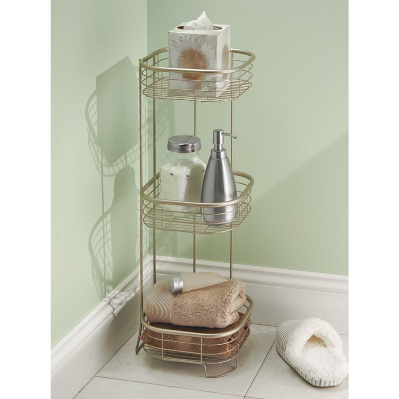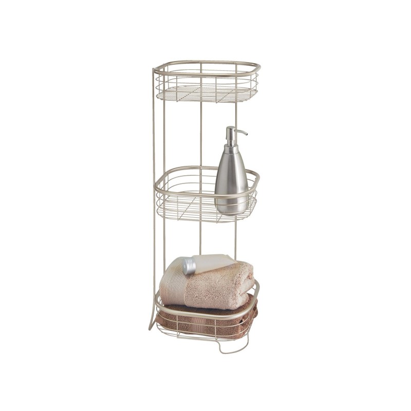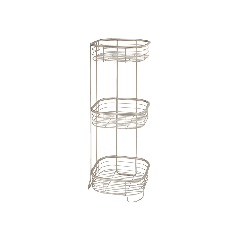 К высокой стойке-держателю крепятся три вместительные полки в виде проволочных корзин. Они позволяют отводить влагу, если стойка находится, к примеру, в душевой кабине или возле умывальника. Нержавеющая сталь очень прочная и делает стеллаж устойчивым на любой поверхности. А антикоррозийная отделка позволит аксессуару служить вам долгие годы и не терять свой внешний вид.